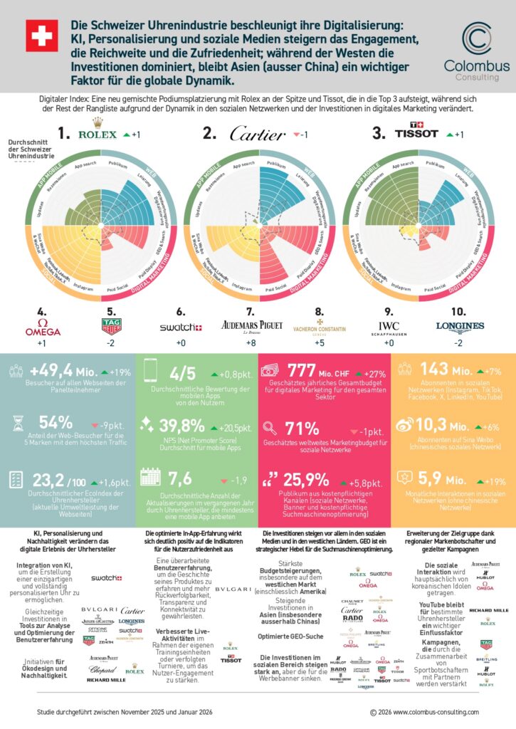 Nach einem durchwachsenen Jahr 2025 gewinnt die Uhrenbranche wieder an Dynamik. Die Zahl der Web-Nutzer steigt um +19 % , getragen von der Widerstandsfähigkeit der westlichen Märkte und Asiens (ausser China). Während mobile Anwendungen, künstliche Intelligenz und GEO (Generative Engine Optimisation) zu strategischen Differenzierungsfaktoren werden, muss sich die Branche noch der Herausforderung des digitalen Ökodesigns stellen, um ihre digitale Performance mit ihren CSR-Verpflichtungen in Einklang zu bringen.
